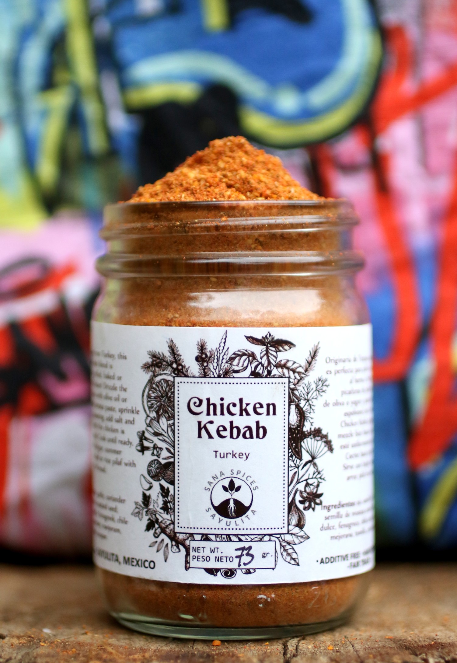 Ingredientes: ajo, semilla de cilantro, semilla de mostaza amarilla, paprika dulce, fenogreco, chile ancho, romero, mejorana, tomillo, pimienta negra.