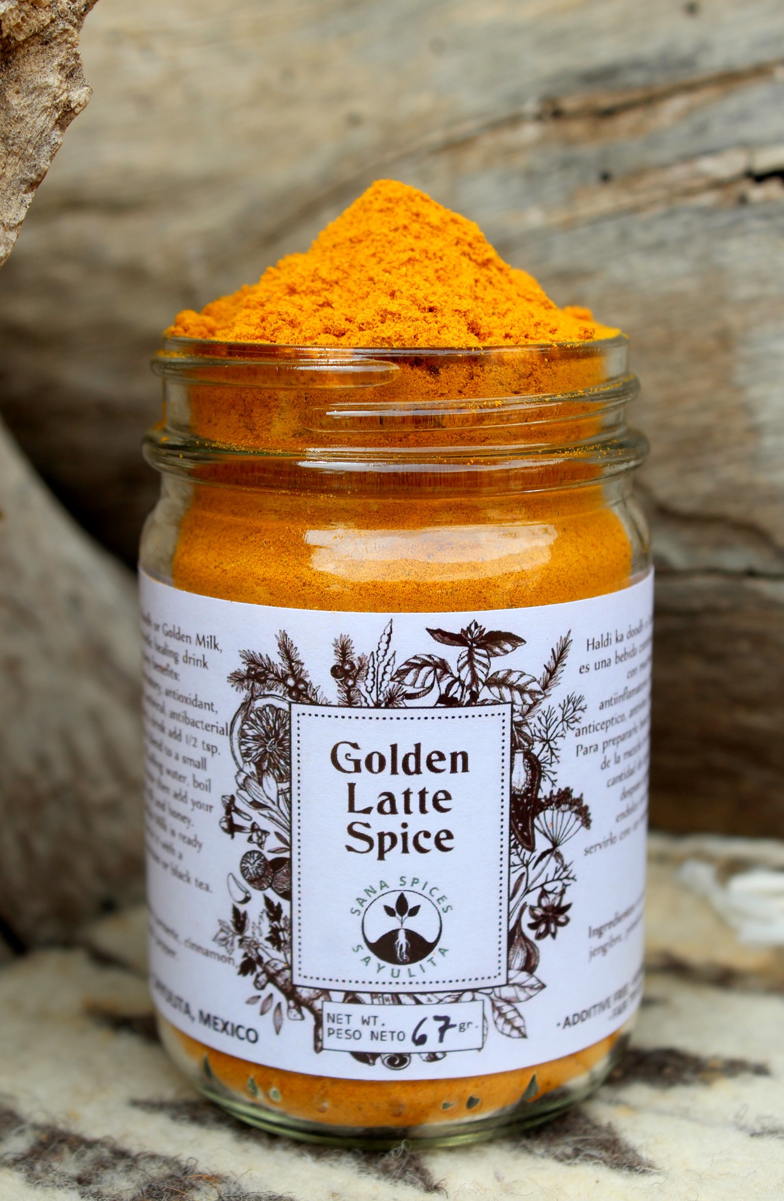 Ingredientes: cúrcuma, canela, jengibre, pimienta negra.